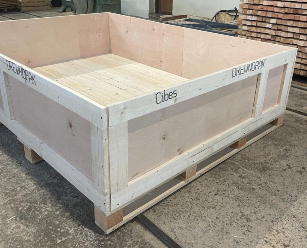 Takie skrzynie mają konstrukcję ramową, czyli szkielet wykonany z kantówek i desek drewnianych, a wypełnienie lub obicie ze sklejki. Najczęściej stosowana przez nas sklejka pochodzi od polskiego producenta i ma grubość 6,5 mm. Skrzynie wykonane w tej specyfikacji charakteryzują się wysoką wytrzymałością i trwałością, są również odporne na warunki atmosferyczne. Taka konstrukcja zwiększa również odporność skrzyni na uszkodzenia mechaniczne podczas załadunków i przeładunków. Tego typu  skrzynie są często używane w branży automotiv. Produkujemy je również w wersji skrzyń fitosanitarnej IPPC oraz w wersji z okuciami lub zapięciami.