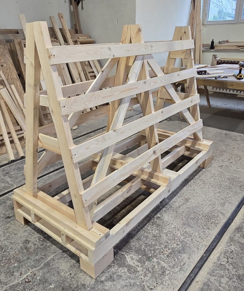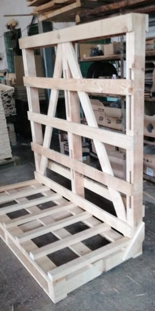 Stojaki produkujemy na postawie paletowej, ażurowej bądź pełnej. Konstrukcję stojaków każdorazowo dostosowujemy do wymagań klienta. Jest to doskonałe rozwiązanie do transportu elementów szklanych, szyb samochodowych, okien, drzwi